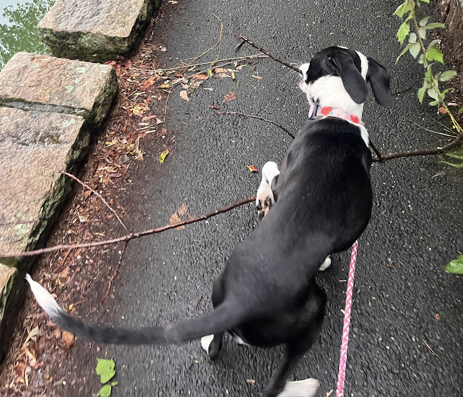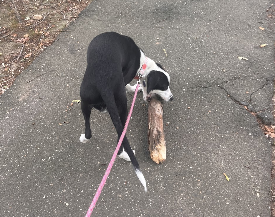 Please enjoy these photos of my little dog who likes to carry sticks that are bigger than her body.